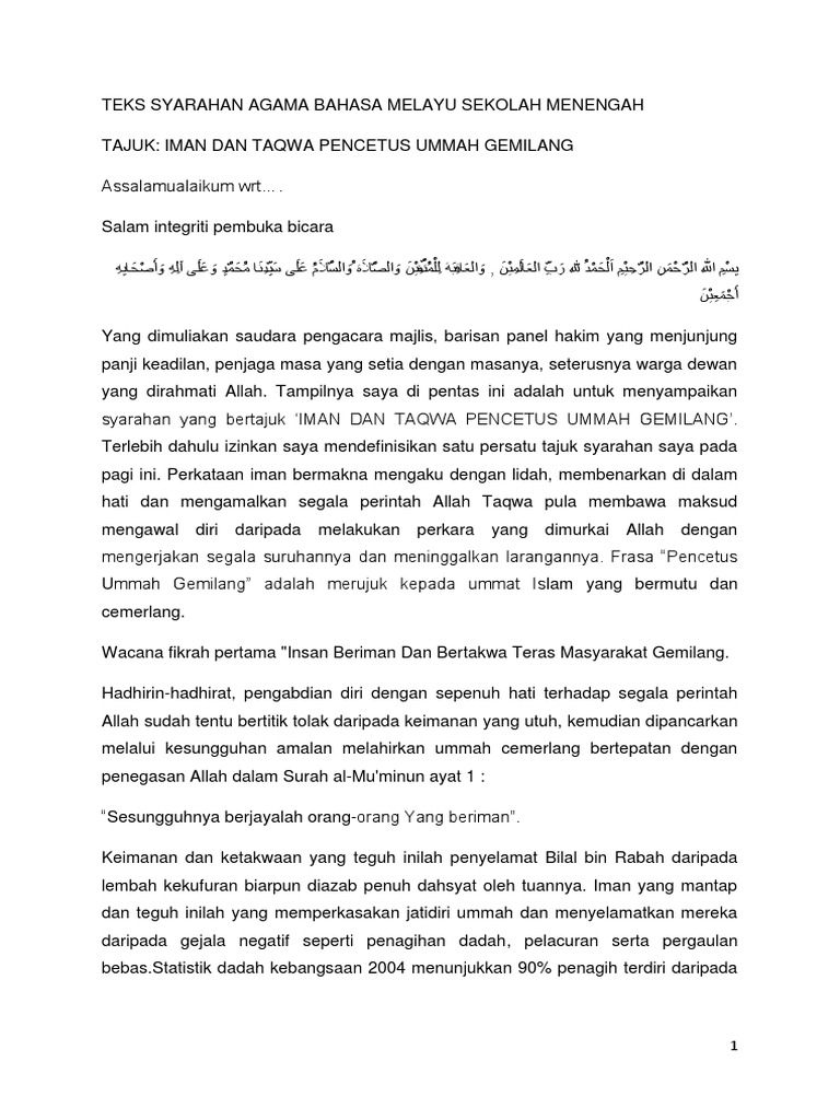 Teks Syarahan Agama Bahasa Melayu Sekolah Menengah Pdf